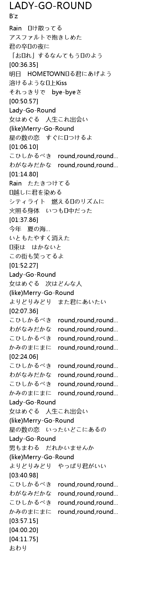 | [03:25.48] | Lady-Go-Round |