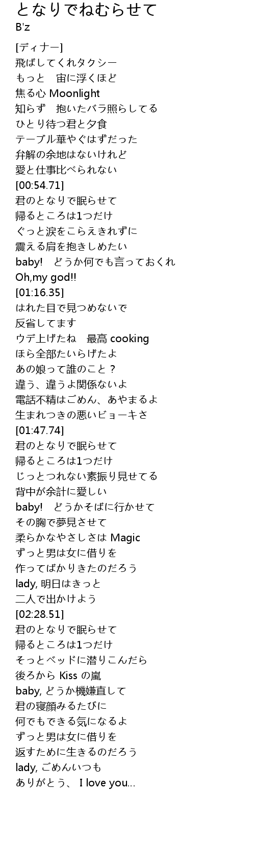 | [01:09.64] | baby! どうか何でも言っておくれ |