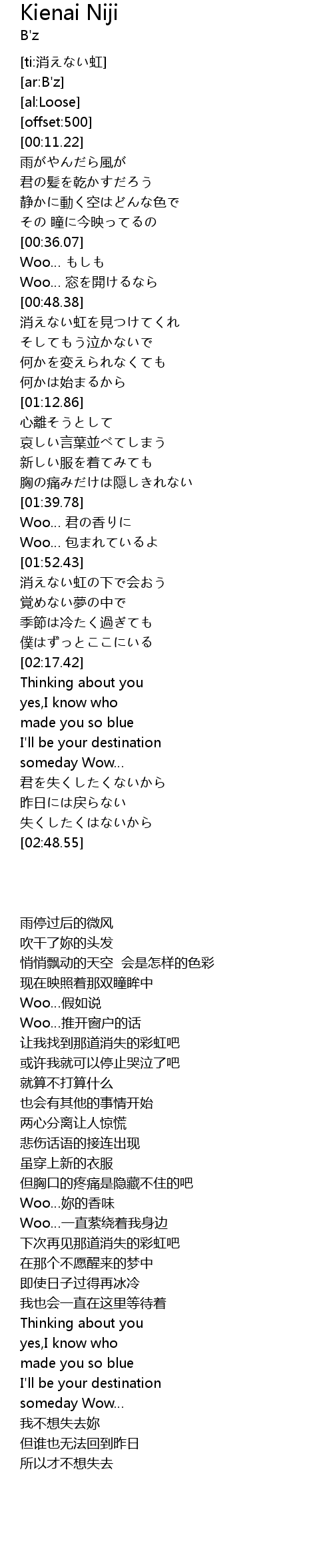 | [00:50.48] | 消えない虹を見つけてくれ |