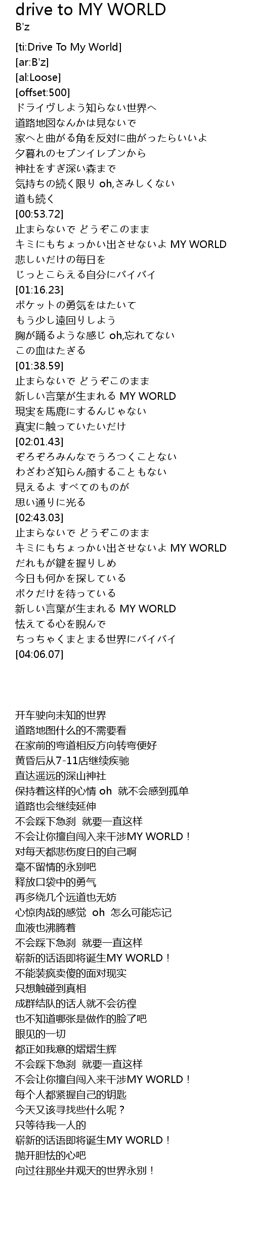 | [02:53.86] | chū MY WORLD |