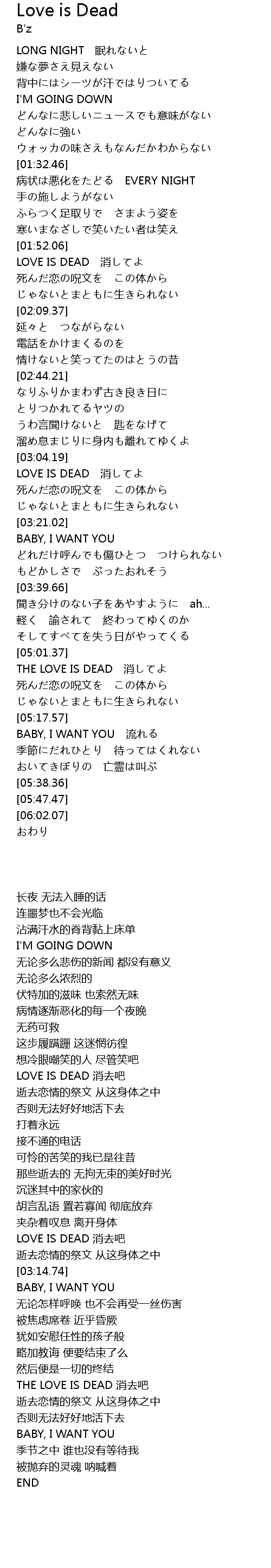 | [03:04.90] | LOVE IS DEAD 消してよ |