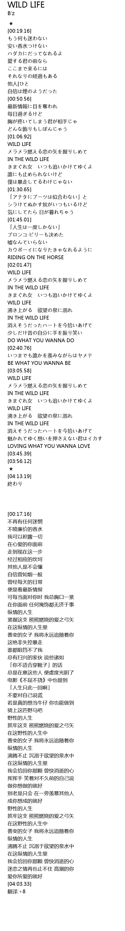 | [02:17.41] | WILD LIFE |