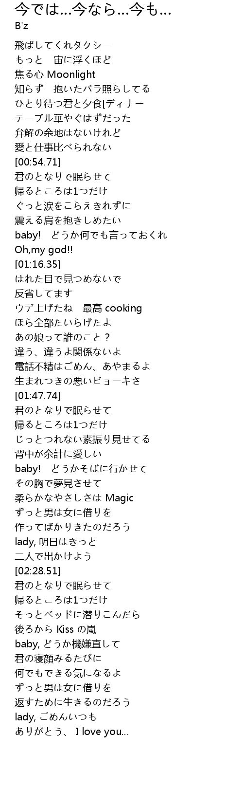 | [01:09.64] | baby! どうか何でも言っておくれ |