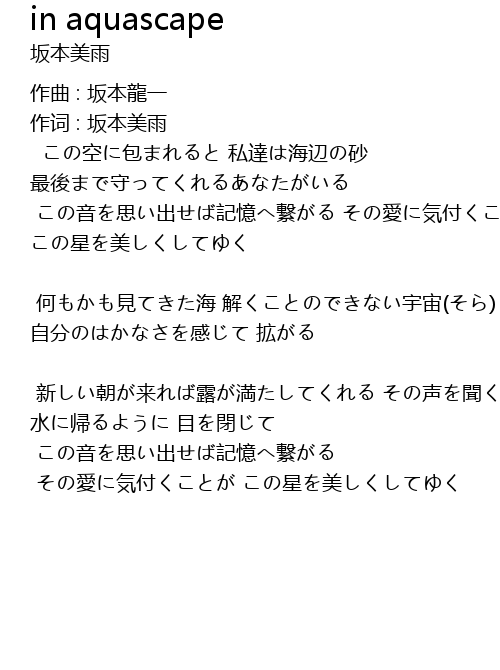 | 新しい朝が来れば露が満たしてくれる その声を聞くために 水に帰るように 目を閉じて | |
