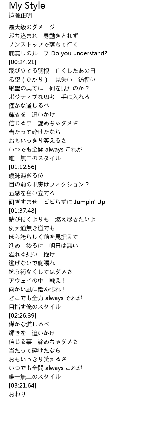 | [03:18.09] | 唯一無二のスタイル |