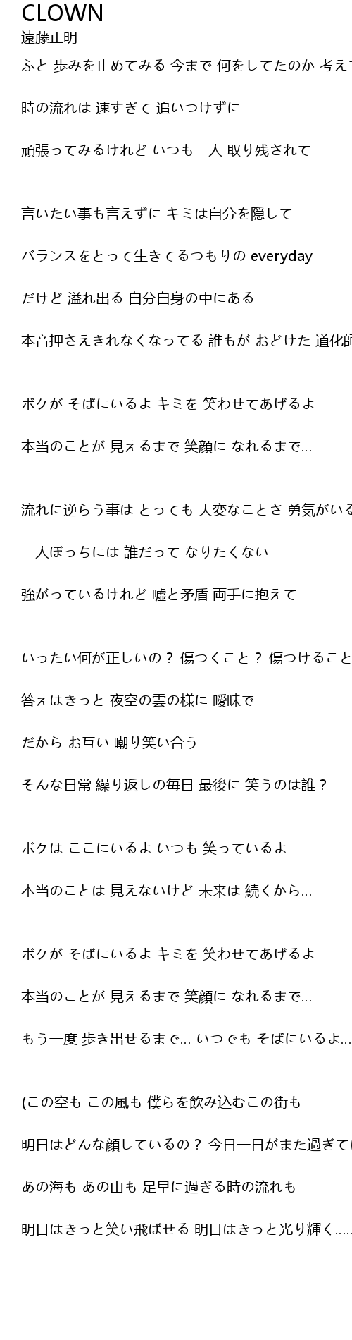 | 本音押さえきれなくなってる 誰もが おどけた 道化師 | |
