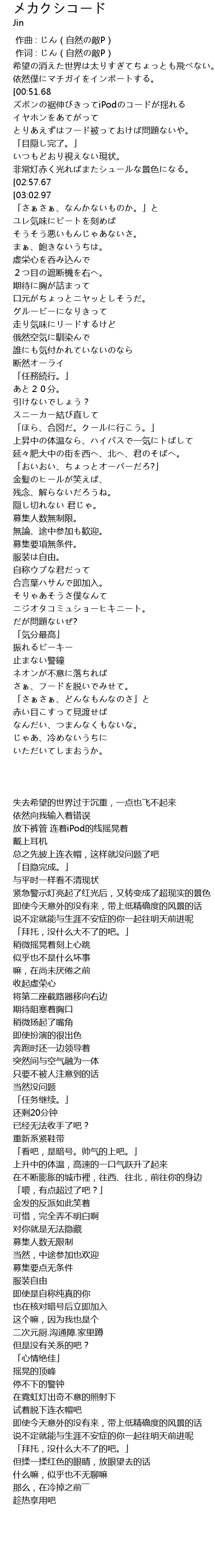 | [00:31.39] | ズボンの裾伸びきってiPodのコードが揺れる |