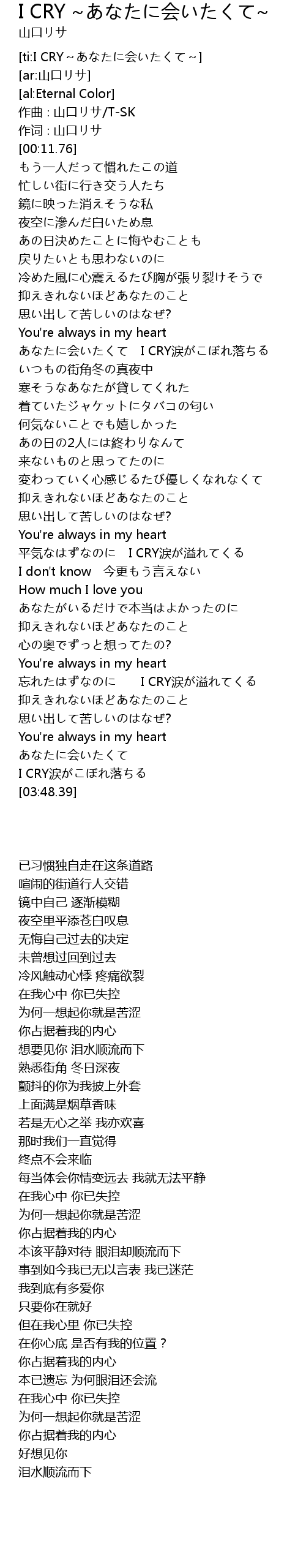 | [03:40.38] | I CRY涙がこぼれ落ちる |