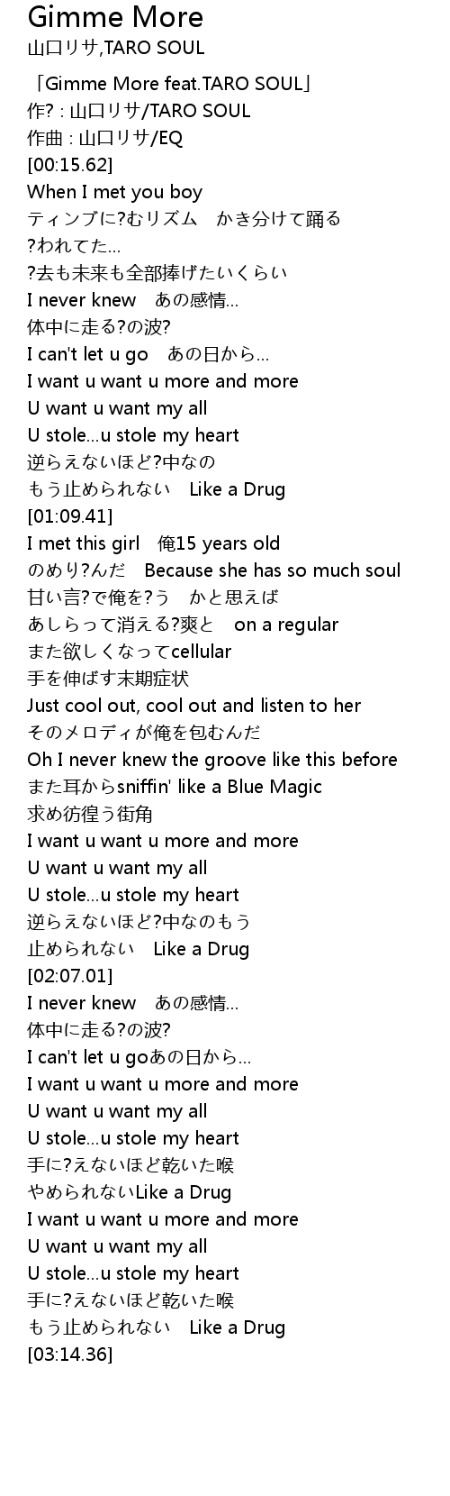 | [00:01.62] | 「Gimme More feat.TARO SOUL」 |