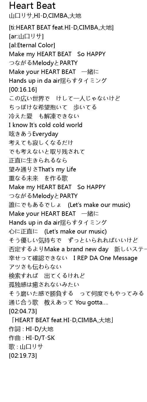 | [ti:HEART BEAT feat.HI-D,CIMBA,大地] | |