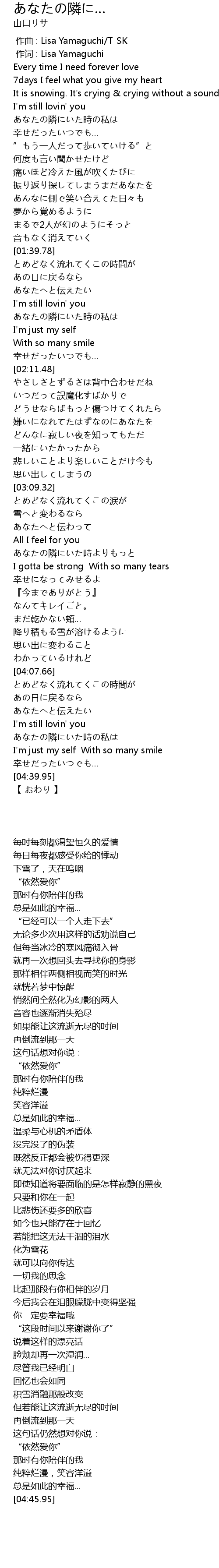| [00:00.10] | 作词 : Lisa Yamaguchi |