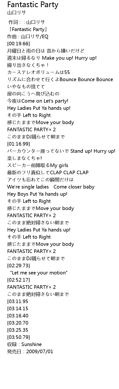 | [03:38.68][03:20.70] | FANTASTIC PARTY×2 |