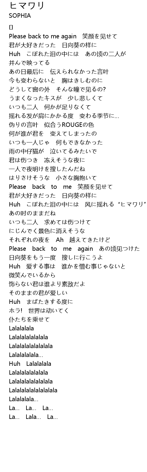 | Huh こぼれた泪の中には 风に摇れる“ヒマワリ” | |