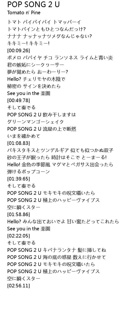| [02:31.40] | POP SONG 2 U 海の底の惑星 数えに行かせて |