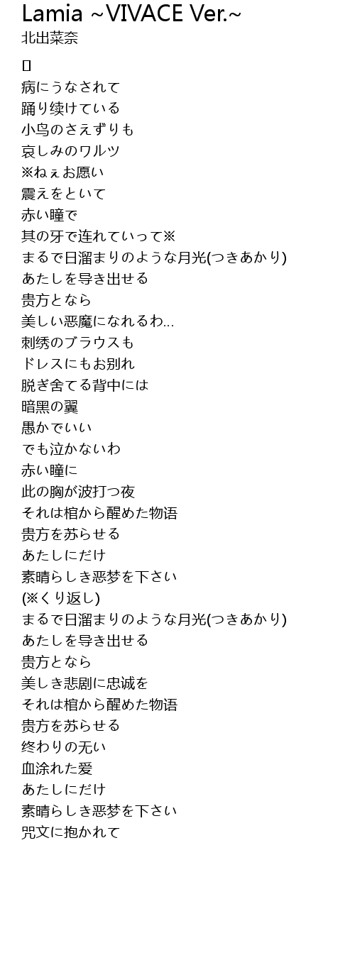Lamia ~VIVACE Ver.~ Lyrics