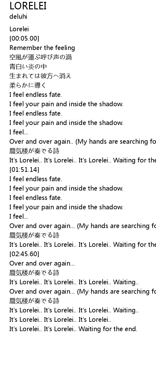 | [02:29.31] | It's Lorelei.. It's Lorelei.. It's Lorelei.. Waiting for the end. |