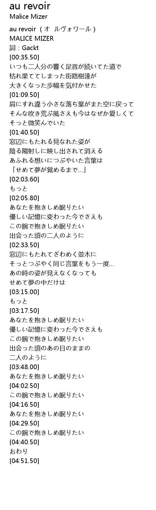 | [04:35.00] | この腕で抱きしめ眠りたい |