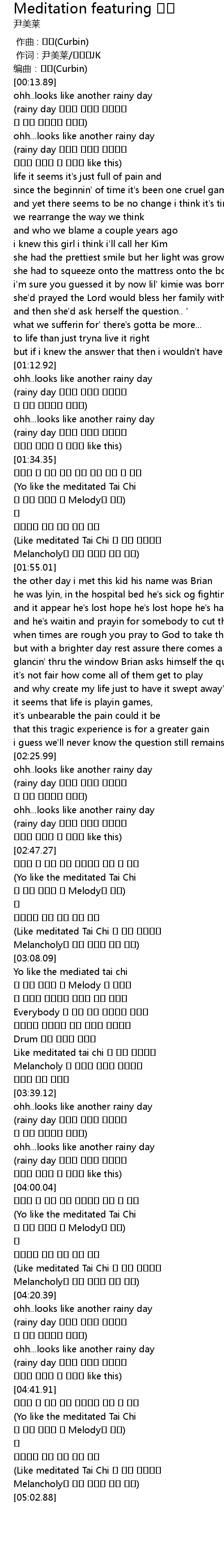 | [01:39.42] | Yo like the meditated Tai Chi |