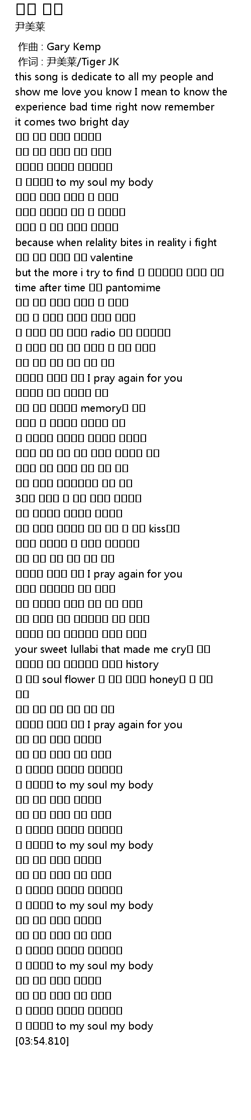 | [03:51.410] | 날 채워주지 to my soul my body |