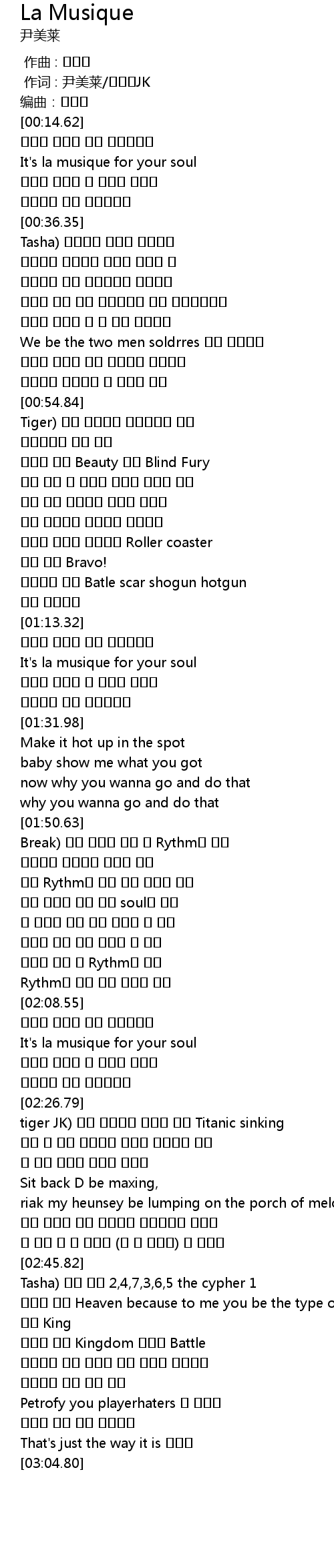 | [02:13.43] | It's la musique for your soul |
