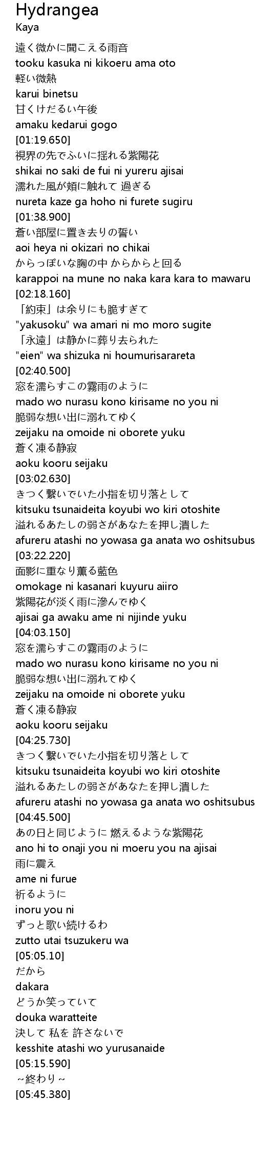 | [04:01.860] | ajisai ga awaku ame ni nijinde yuku |