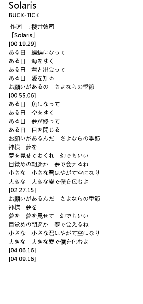 | [00:44.30] | お願いがあるの さよならの季節 |