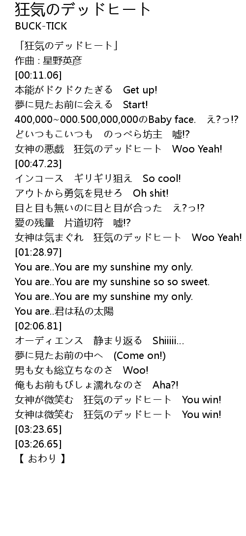 | [03:00.81] | 女神が微笑む 狂気のデッドヒート You win! |