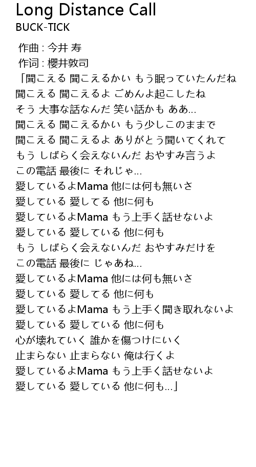 | [04:07.48] | 愛しているよMama もう上手く聞き取れないよ |