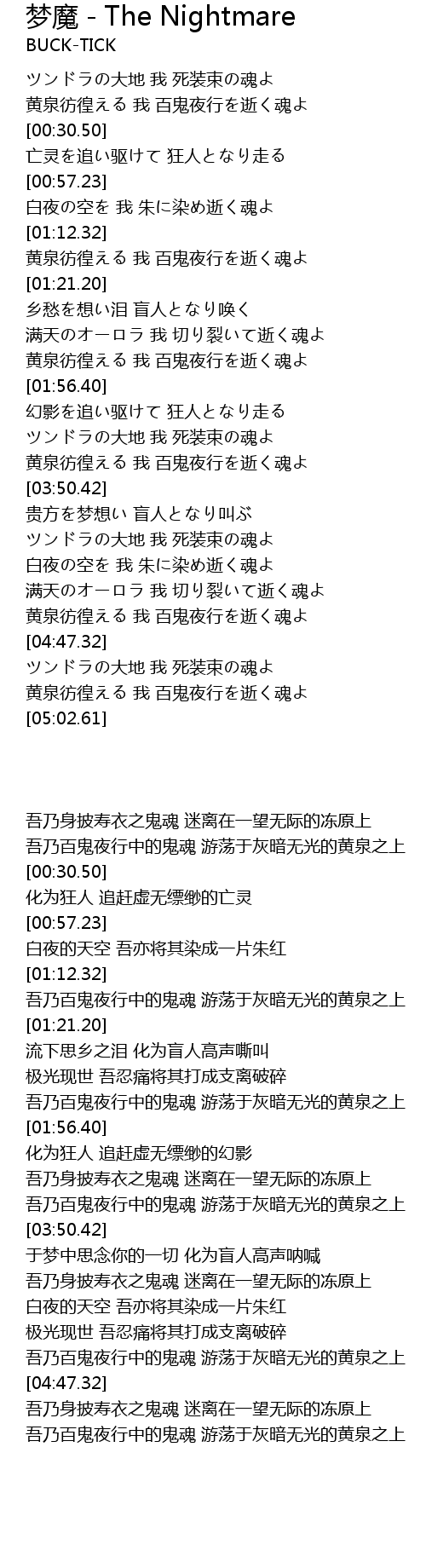 | [04:48.34] | ツンドラの大地 我 死装束の魂よ |