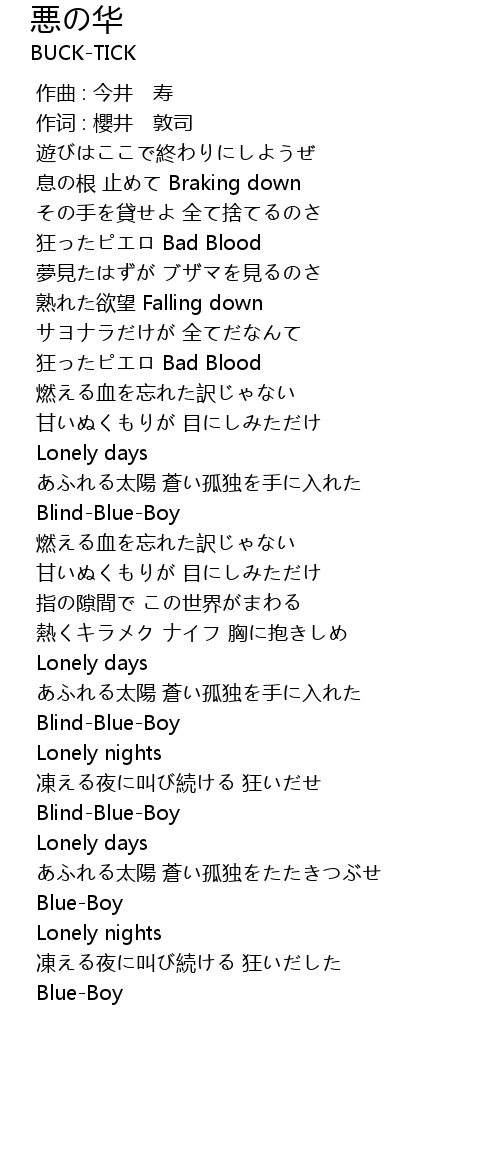 | [01:19.372] | 狂ったピエロ Bad Blood |