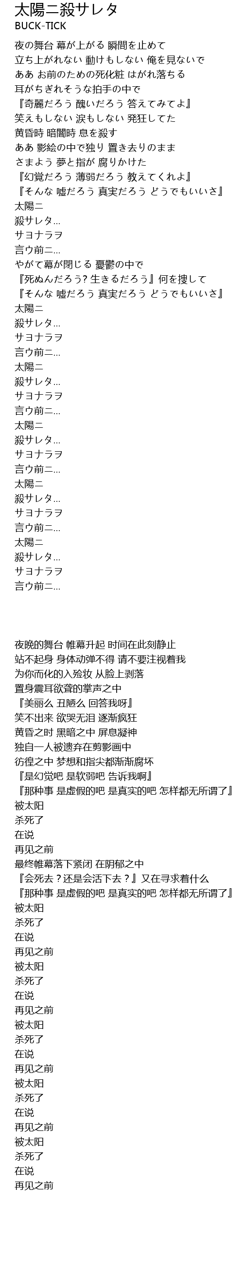 | Song | 太陽ニ殺サレタ |