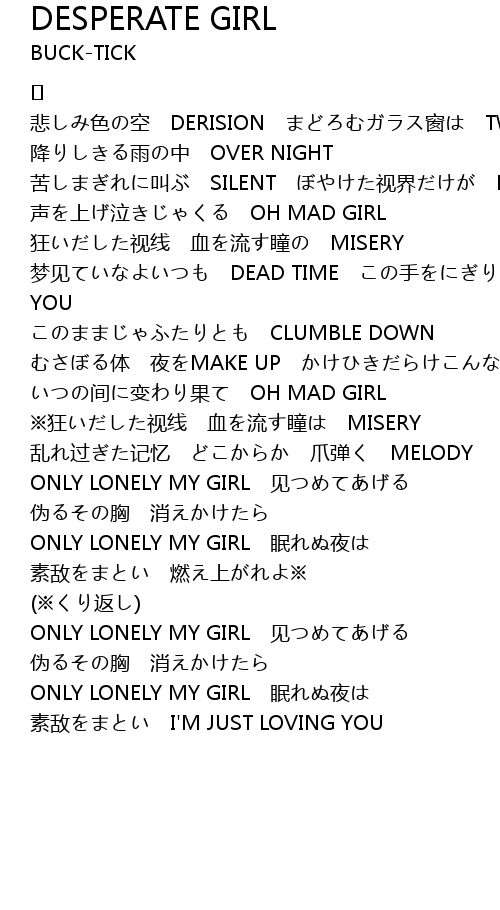 | 声を上げ泣きじゃくる OH MAD GIRL | |