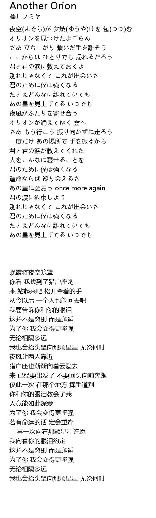 | [02:05.80] | オリオンが消えてゆく 雲へ |