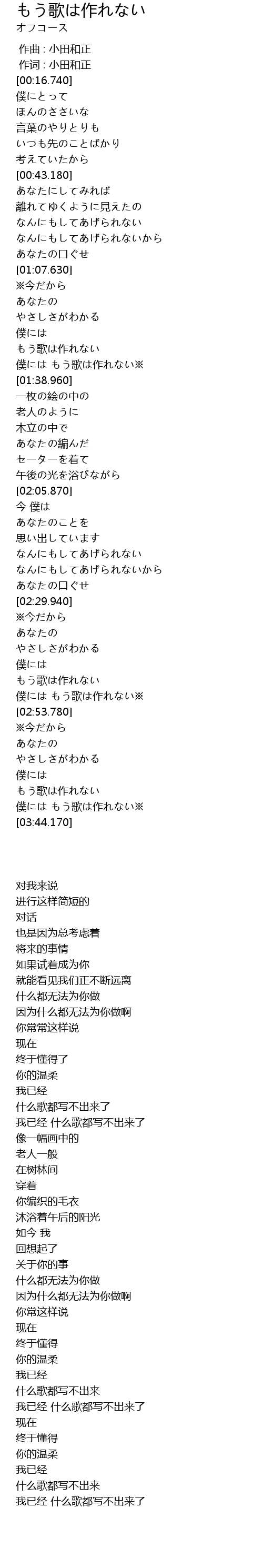 | [03:35.210] | 僕には もう歌は作れない※ |