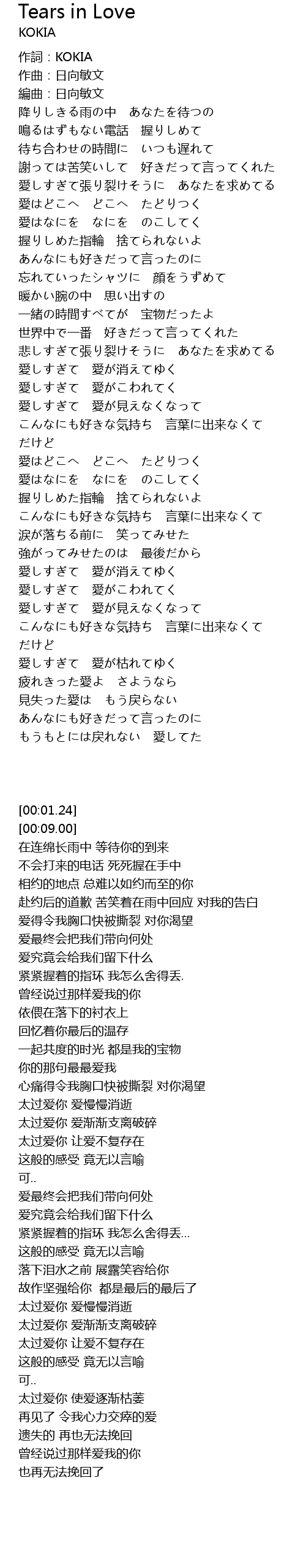 | [00:01.24] | zuo ci: KOKIA |