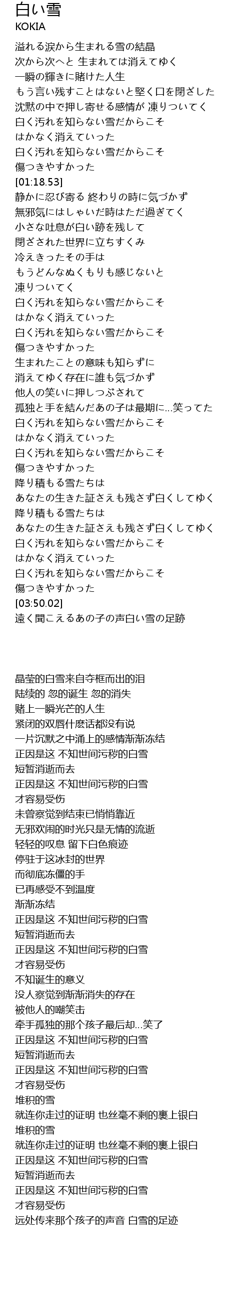 | [03:38.96] | 白く汚れを知らない雪だからこそ |