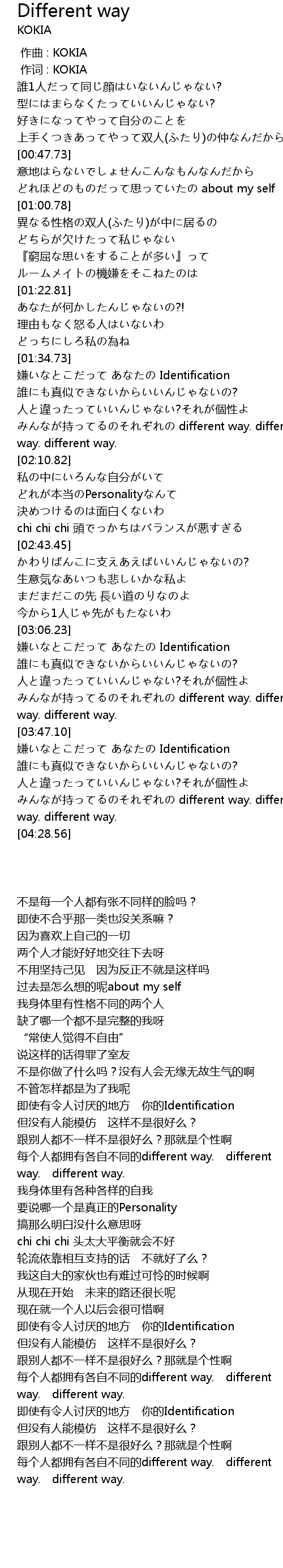 | [01:52.47] | chi different way. different way. different way. |