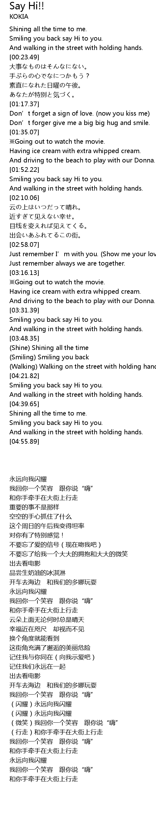 | [04:27.98] | Smiling you back say Hi to you. |