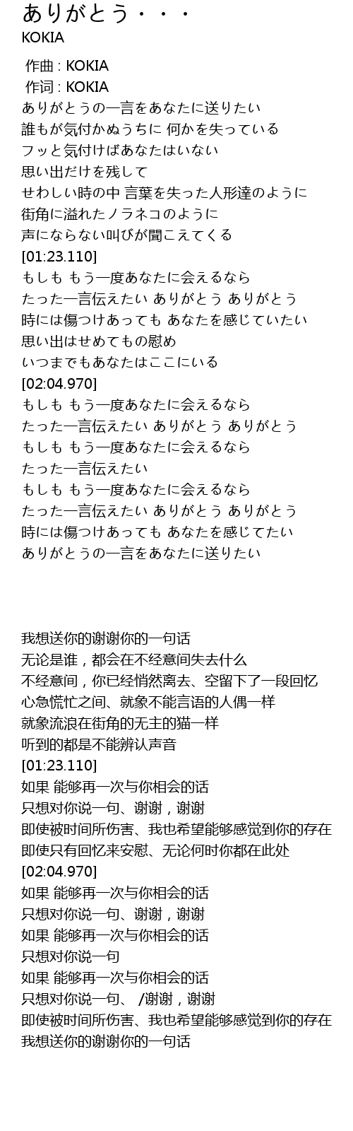 | [02:16.180] | たった一言伝えたい ありがとう ありがとう |