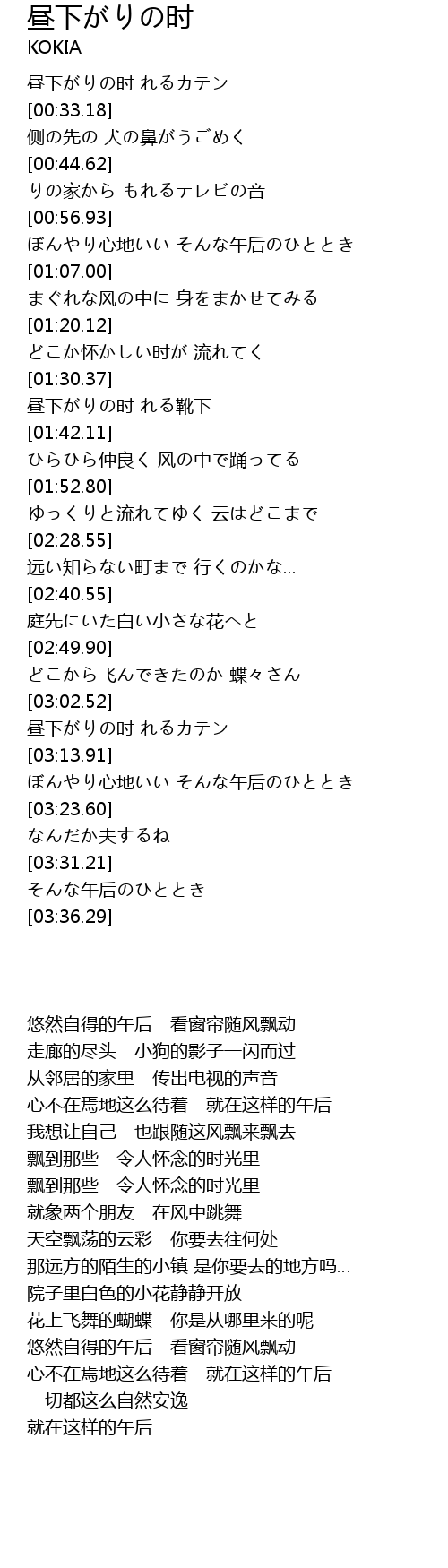 | [03:16.53] | ぼんやり心地いい そんな午后のひととき |
