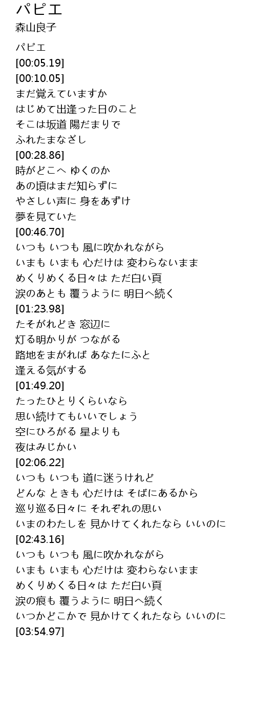 | [03:24.55] | めくりめくる日々は ただ白い頁 |