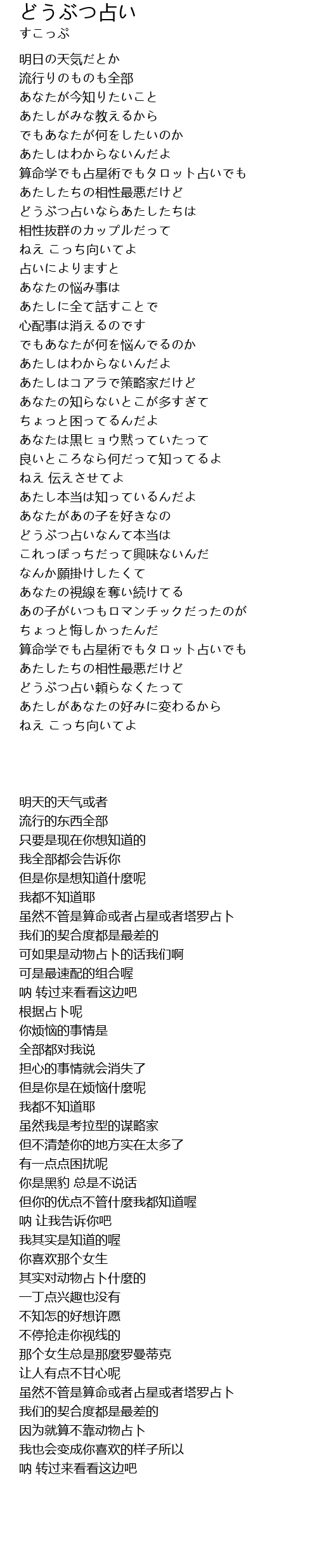 | Song | どうぶつ占い |