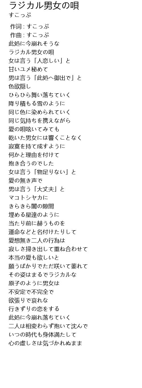 | [00:08.29] | ラジカル男女の唄 |