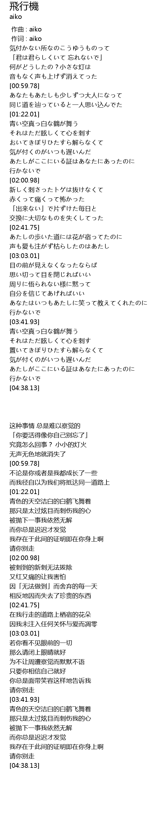 | [03:59.51] | 青い空真っ白な鶴が舞う |