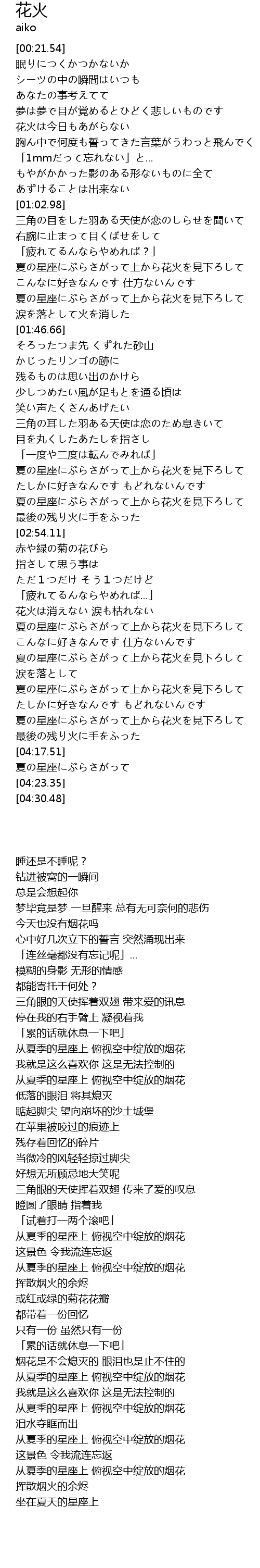 | [04:00.05] | 夏の星座にぶらさがって上から花火を見下ろして |