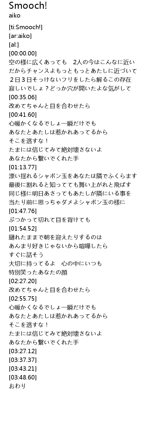 | [00:48.06] | あなたとあたしは惹かれあってるから |
