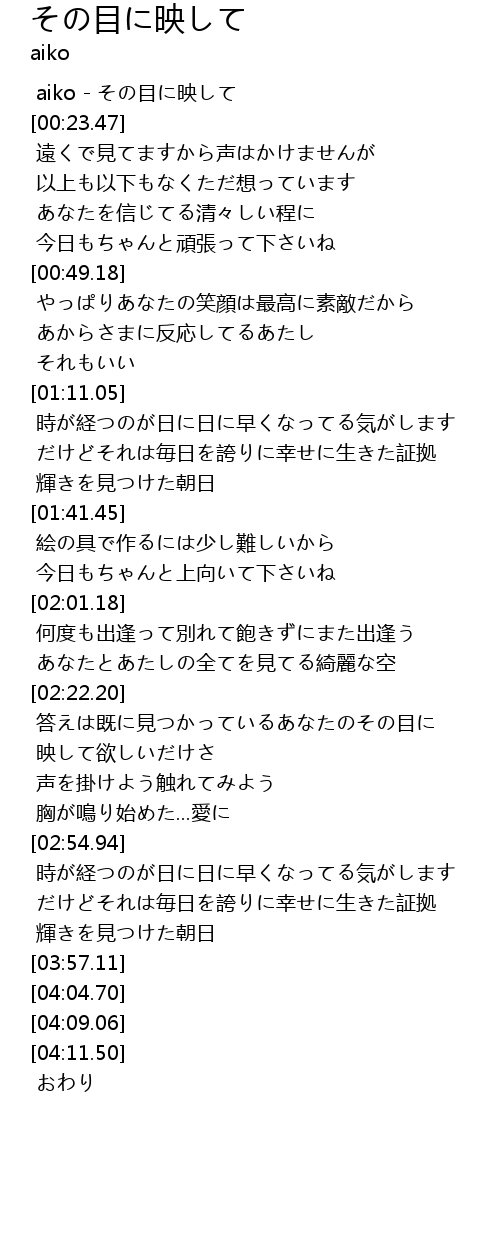 | [03:28.51] | 時が経つのが日に日に早くなってる気がします |