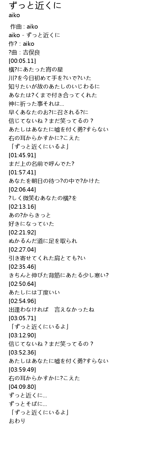 | [00:00.42] | aiko - ずっと近くに |