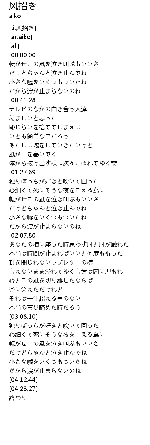 | [01:29.01] | 独りぼっちが好きと吹いて回った |