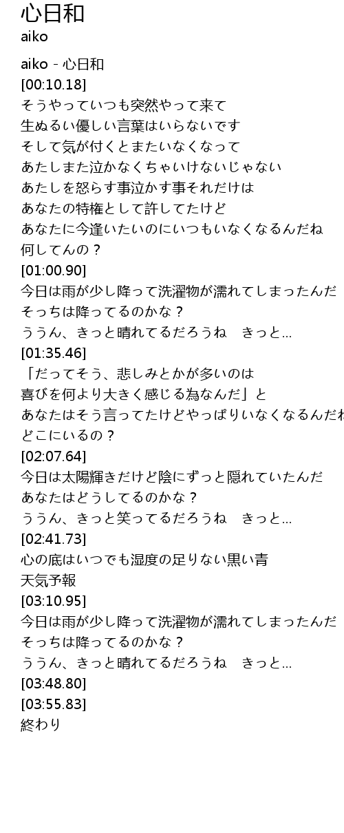 | [00:00.00] | aiko - 心日和 |